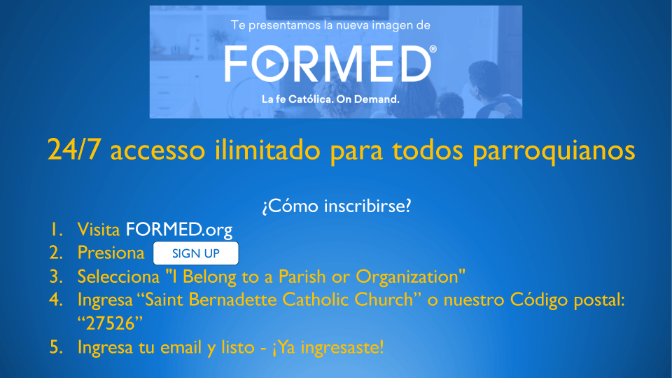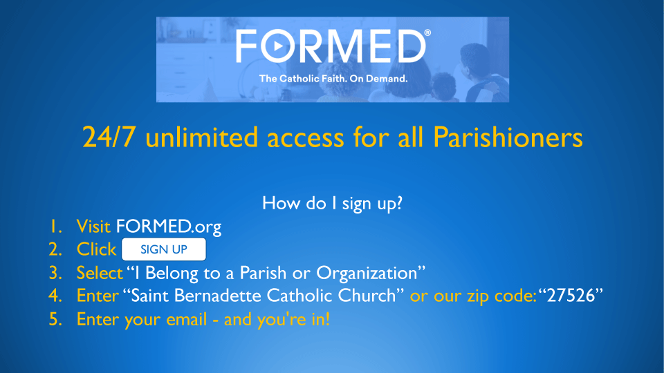 Saint Bernadette views Faith Formation “as every action, experience, or relationship that nurtures a transformative relationship of trust with God and shapes the way we see and interact with God’s world. Faith formation is the very mission of God’s church, to equip followers of Jesus Christ so that they may be sent out into the world to spread God’s kingdom.” – excerpt from Spirit and Truth